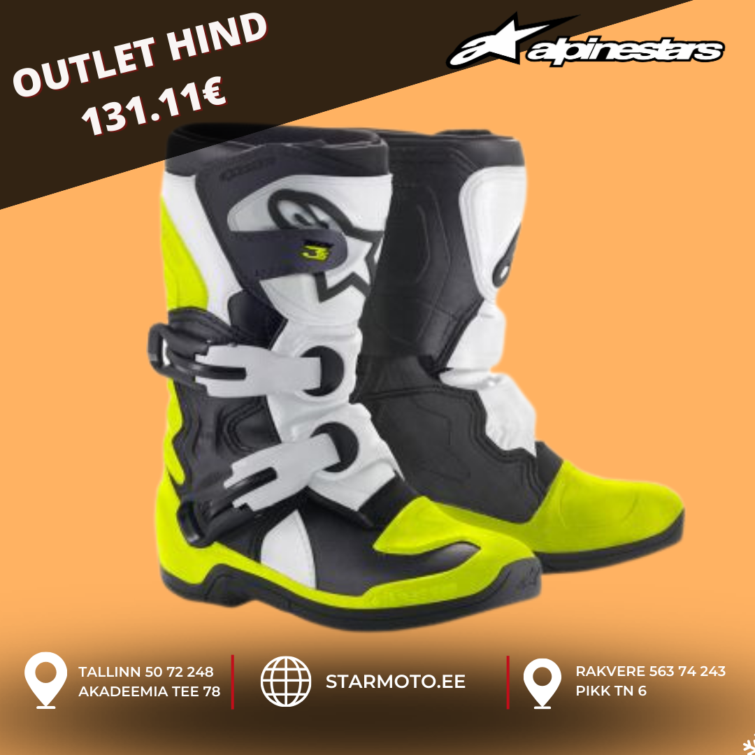 Alpinestars Tech 3, 5, 7 ja 10 V2 motokrossi saapad: Need on uuendatud versioonid Alpinestarsi Tech motokrossi saabastest. Need on valmistatud kõrgekvaliteedilisest nahast ja on varustatud uuendatud turvafunktsioonidega, nagu näiteks uus pahkluu- ja põlvekaitsesüsteem.
