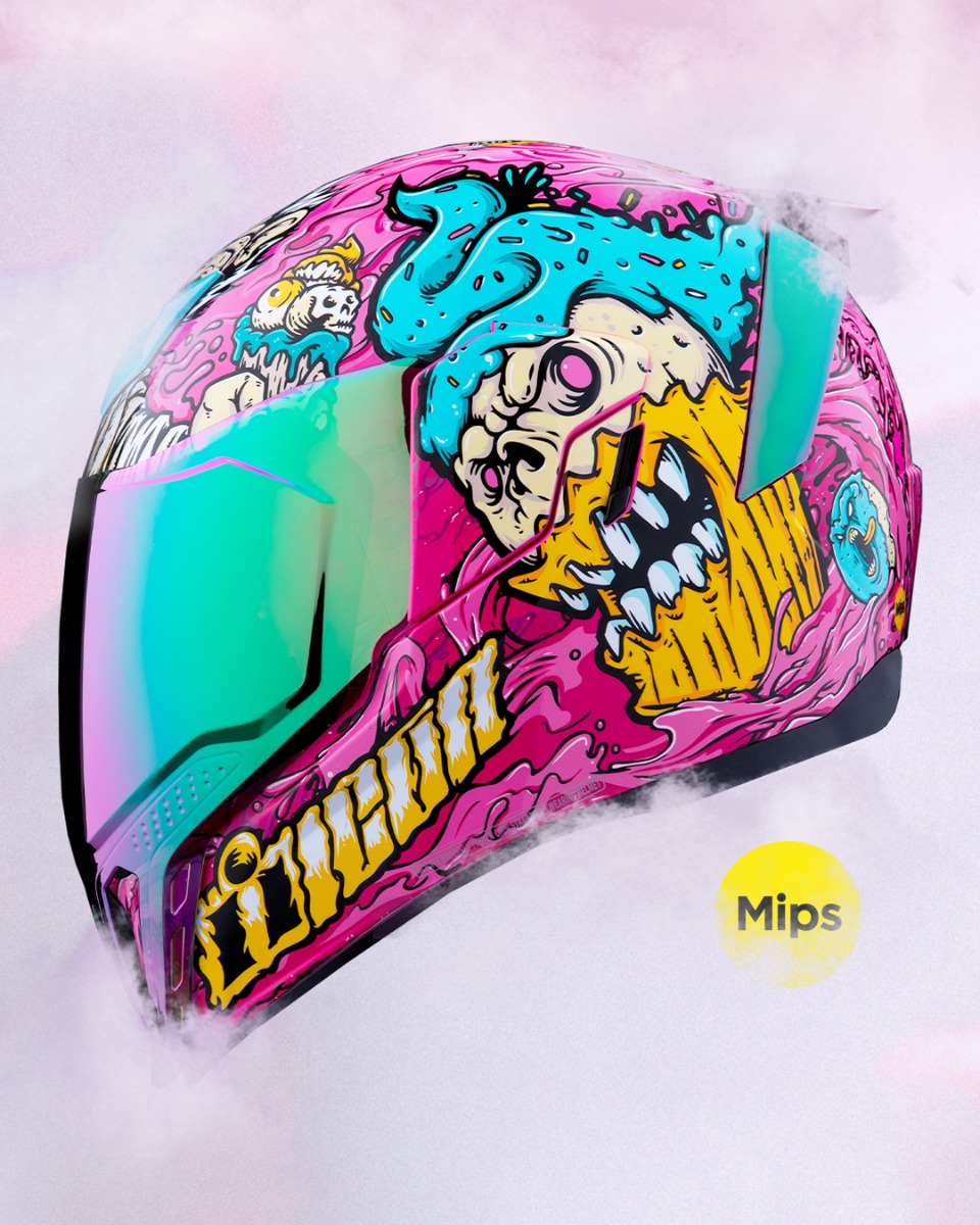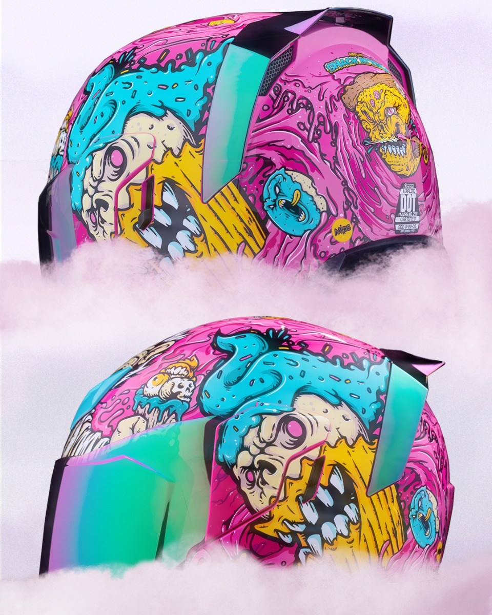 Teie terviseõpetaja hoiatas teid selle eest. Halb toit ei kohtle sind kunagi hästi. Psühhedeelne, kõrge kalorsusega õudusunenägu graafikust istub Airflite MIPS Snack Attack Kiivri peal.